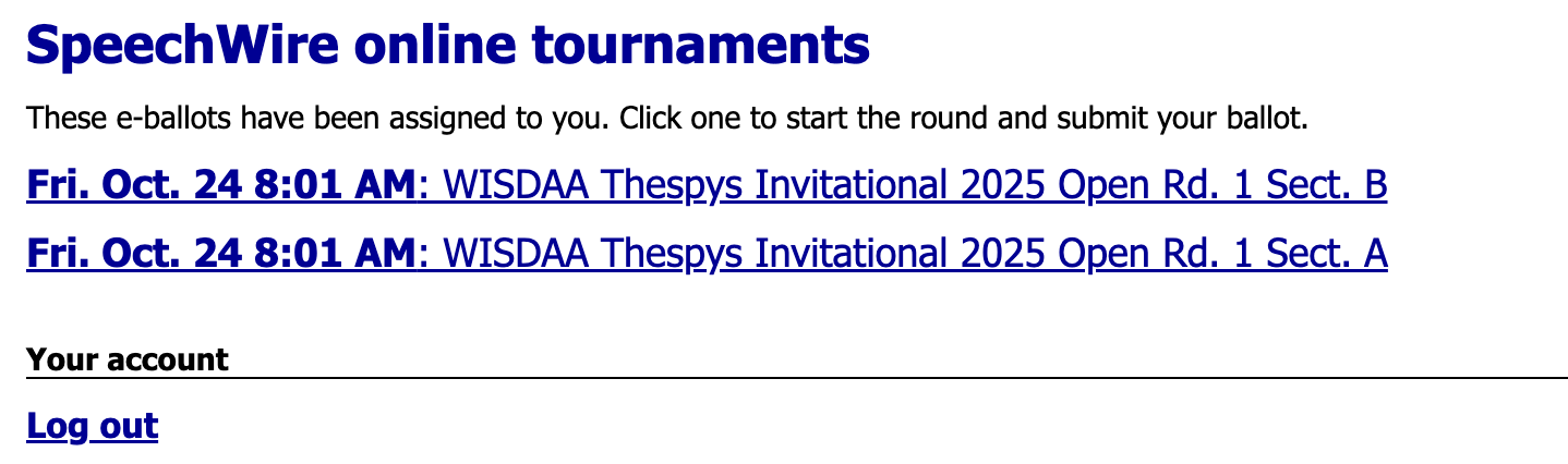 Once you log in, you should see one or more assignments listed, with the start date/time and description of the round.