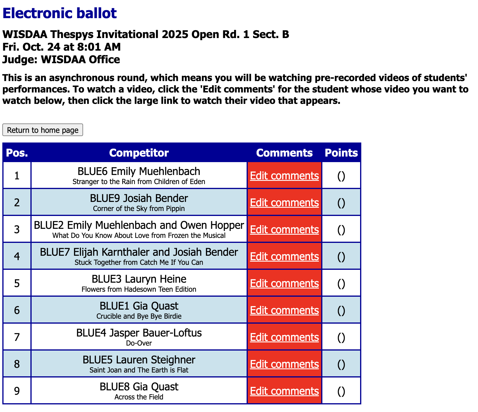 You will then see a table with alternating rows, with links to Edit comments for each contestant. Please see any notes at the top.