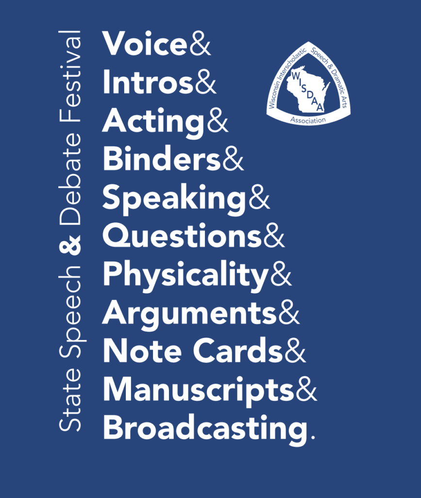 Schools have until 12 Noon, Tuesday, April 7, 2026, to confirm State registration on SpeechWire for the WISDAA State Speech Festival. All schools must log in, add adjudicators (or acknowledge the $200/uncovered adjudicator) and complete the Confirm Entries step. Schools also may pre-order merchandise directly within SpeechWire; however, placing such an order does obligate the school to that financial commitment. To begin, click the button to Access SpeechWire and log in, or if logged in, click the Registration icon.